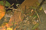 相對沿路賞蛙,定點賞蛙通常會針對池塘、沼澤、稻田…等地區,其實就是有很多水的地方。因此,要在這類的環境賞蛙,可沒有沿路賞蛙來得輕鬆愜意,必須要有夠充分準備。 雨鞋-由於這些環境到處都是水,稍沒注意,可能就一腳採進水池或泥巴裡了。所以,在這種環境賞蛙的時候最好能穿雙雨鞋,可讓您舒服又安心的賞蛙。不過,穿上雨鞋並不表示可以在池塘中自由穿梭,充其量只能在岸邊走動,太深的地方則必須止步。雖然有些釣魚專用的涉水褲可以讓你在更深的水域活動,但是實在是太危險了,並不建議各位蛙友使用,沒必要為了更近一點看青蛙鋌而走險。還是重申一句〝安全最重要〞! 防蚊液-在這種地方上賞蛙,最頭痛的問題就是蚊子,只要身體停頓下來,蚊子馬上降落在你身上,冷不防地叮了一下!因此,可在賞蛙出發前,〝稍微〞噴一下防蚊液,讓蚊子不擅自進身就好了。特別注意!蚊子怕防蚊液,青蛙更怕這類的化學物質(因為它可直接滲透到青蛙體內),如果會用手摸青蛙的人,千萬不能將防蚊液塗在手上,不然青蛙可能慘遭你的〝毒手〞。若是能用薄的長袖外衣,減少防蚊液的使用則更好。 在水池賞蛙通常可以聽到很多青蛙的鳴叫,但是卻不容易尋找,但千萬不能因此而氣餒。或許應該換另一種心情,靜下來好好〝耳朵賞蛙〞,收穫會比眼睛賞蛙來得多喔! |