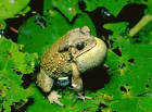 牛蛙目前已對原生蛙類造成威脅。 |